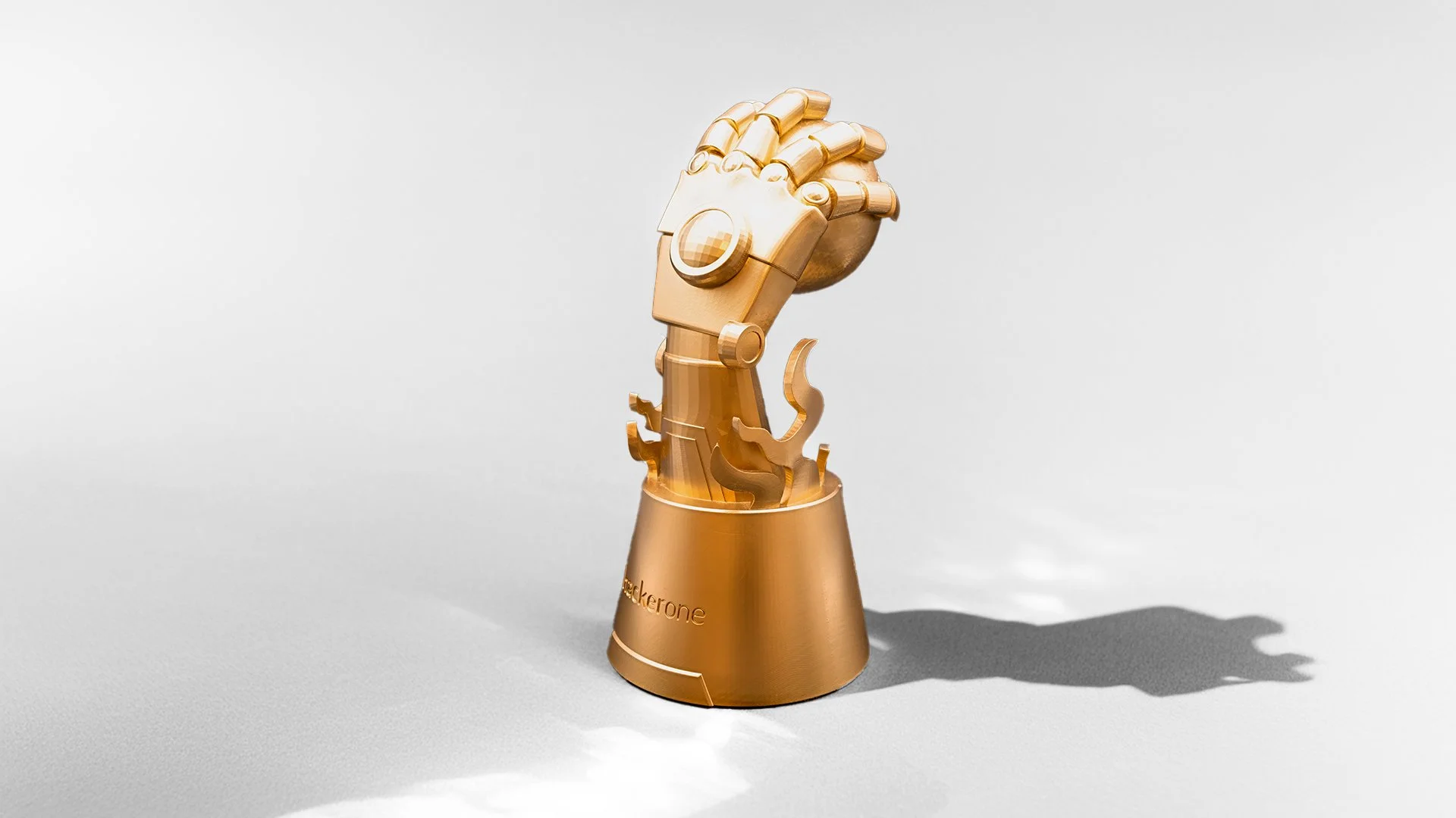 Example: The HackerOne World Ambassador Final Four trophy is a striking robotic golden hand created to honor precision, mastery, and technical innovation in ethical hacking. The sculpted hand clutching a sphere symbolizes focus and ingenuity required in ethical hacking, while the flowing, organic forms at the base reflect creativity and technical expertise. Every detail was intentional, transforming recognition into a sculptural work of art that celebrates not just achievement but skill, vision, and ambition. Beyond its visual appeal, the design communicates the organization’s value on mastery and problem-solving, reinforcing innovation in every recognition moment.