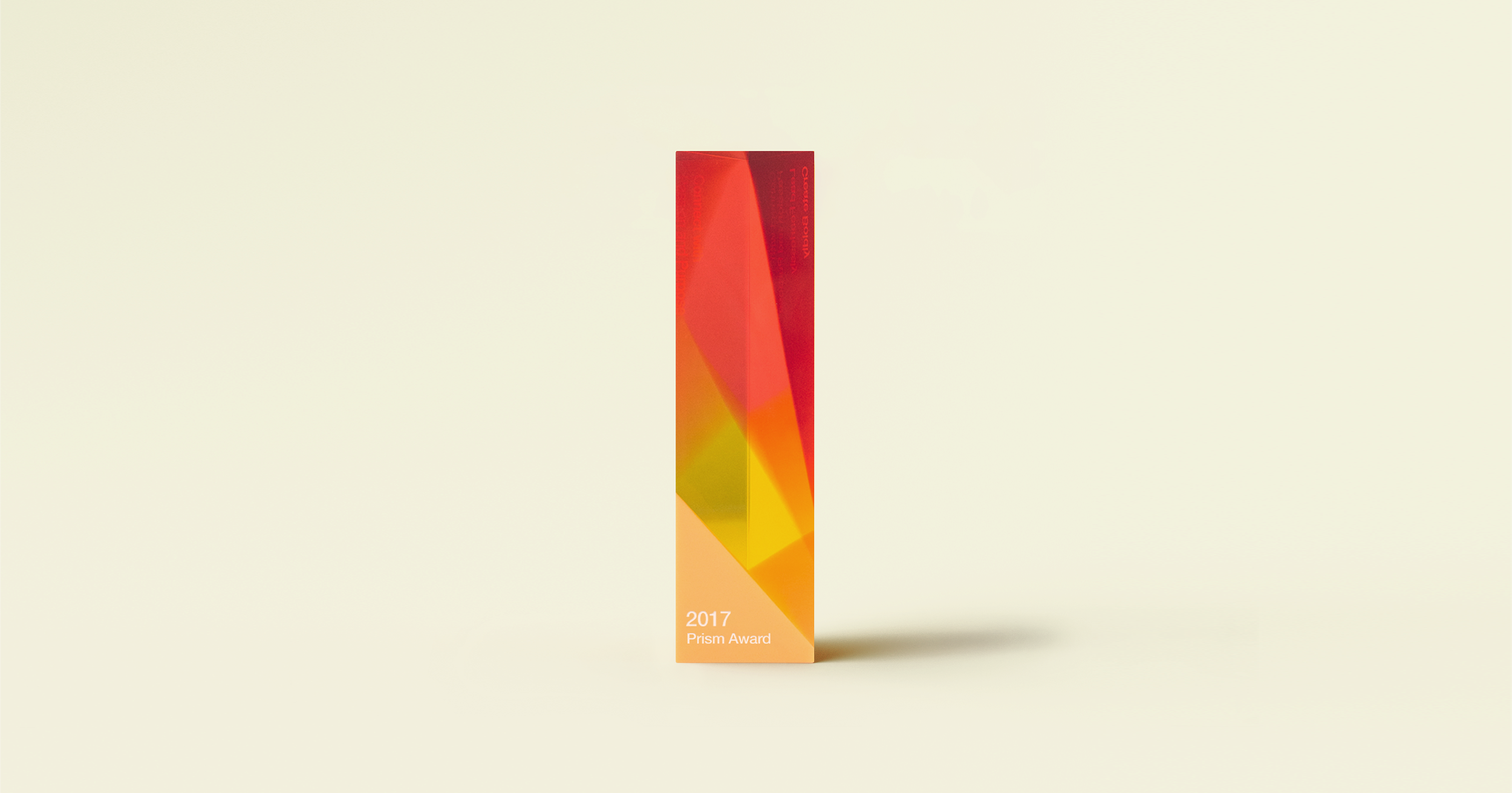 Example: The Frito-Lay Prism Awards showcase these principles. Freestanding triangular obelisks made from translucent acrylic incorporate a spectrum of brand-aligned colors. Personalized white text is screen-printed on all three sides, providing high-contrast, durable detail. Standing 10 inches tall with 3-inch sides, the awards can be displayed horizontally or vertically, adding visual versatility. Precision fabrication ensures clarity and durability, while the bold, modern form communicates creativity, collaboration, and leadership. These awards allow recipients to interact with them, rotate them, and display them in innovative ways, reinforcing the company’s culture of forward-thinking and artistic expression.