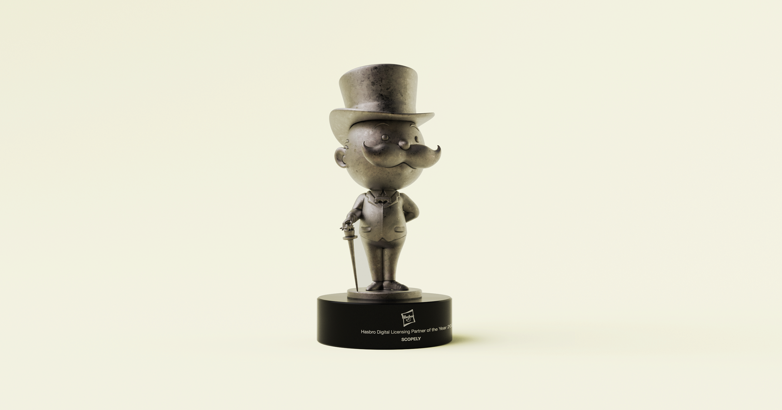 Example: The Hasbro Mr. Monopoly Awards exemplify this approach. Bennett Awards transformed the iconic game mascot into a 7.5-inch bronze sculpture, capturing his signature top hat, mustache, and confident stance. Mounted on 4.5-inch marble bases and finished with a silver nitrate patina, the awards balance playful storytelling with premium craftsmanship. Engraved details feature the Hasbro logo and recipient information. These collectible awards become conversation starters and lasting symbols of partnership, strategy, and success, reflecting both the fun and professionalism inherent in Hasbro’s corporate identity.