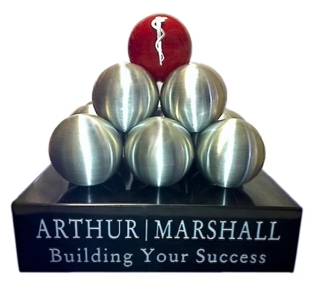A final example is the custom perpetual award we created for Arthur | Marshall. Their corporate logo features an image with depth, which ideally lends itself to a 3D physical creation of the logo in an award.