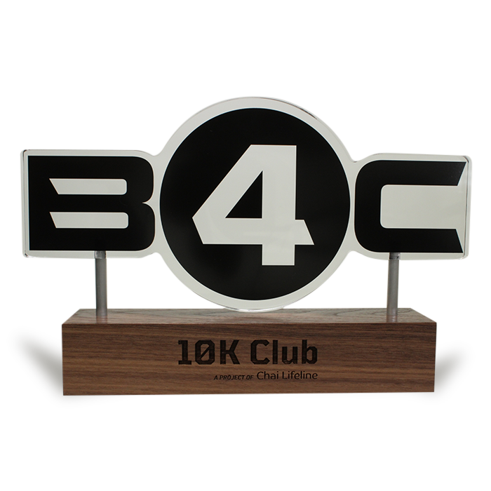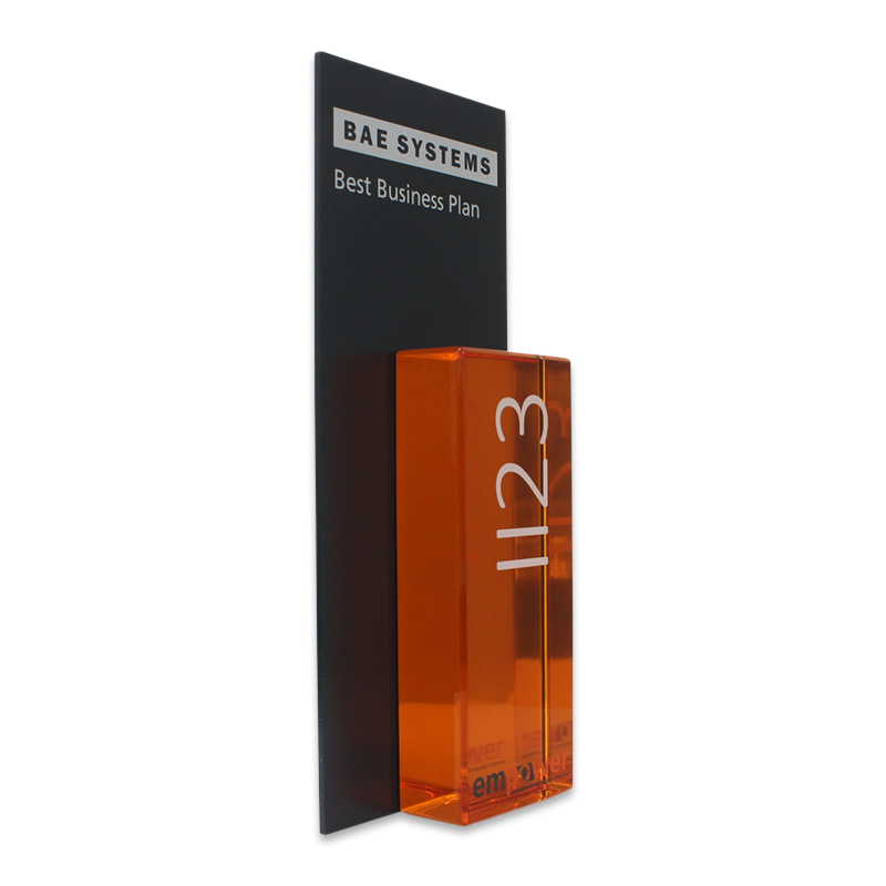Acrylic can be combined with other materials, such as wood or metal, to create custom mixed material awards. The contrast between materials can create a striking effect, and emphasize different aspects of the award’s design. The mixture of materials can be either complex, such as using different materials for different major components of the award, or simple, such as the incorporation of a metal medallion on the surface of an acrylic award.