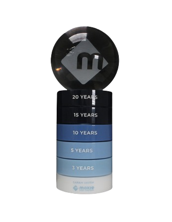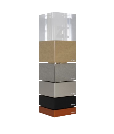 Custom milestone awards accommodate component additions for each achievement level while maintaining cohesive aesthetic appeal. Our design approach ensures awards remain visually balanced whether displaying initial achievement or decades of accumulated milestones—avoiding cluttered appearance as components multiply while clearly communicating progressive success through evolving recognition displays.