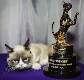 The 20 semi-finalists were selected on August 6, 2013, and each received a one-year supply of Friskies cat food and Friskies® Party Mix brand cat treats. The contest then moved to the public voting phase, and each of the semi-finalist videos was placed on the Internet so they public could vote for their favorite. Based on the popular public vote, the top three from each category were named Finalists, and received a trip to New York City to take part in “The Friskies” Award Show. During the award show, which was broadcast online, the panel of judges selected one winner from each of the four categories. In addition, a Fan Favorite winner was selected based on the public’s text votes. Each winner received a $5,000 cash prize and a custom trophy designed by Bennett Awards called “The Friskies Catuette”. In addition, the Internet’s famous “Grumpy Cat” won a Lifetime Achievement Award.