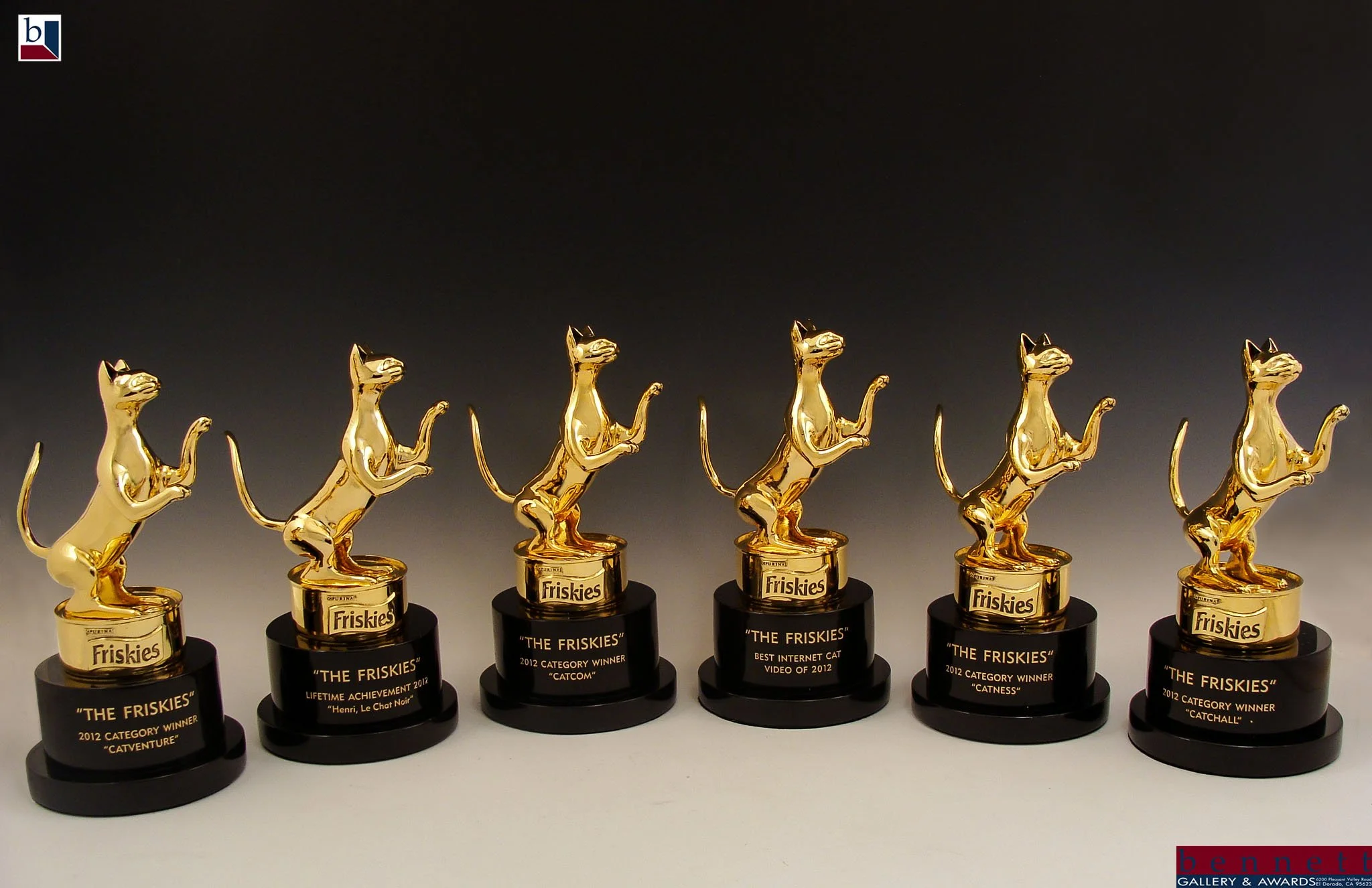 For the second consecutive year, Purina’s Friskies® Cat Food used custom trophies designed by Bennett Awards to recognize winners in their annual Internet cat video contest called “The Friskies”. The Friskies are awarded to the best Internet cat videos of the year. These recognition awards celebrate the pop culture phenomena of cat videos and the cats that inspire them.