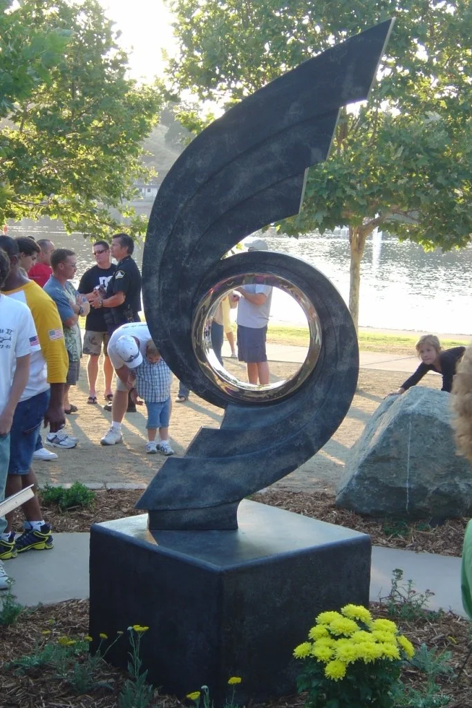 A 10’ Bennett Award custom monumental sculpture, titled “Star VI”, was unveiled on July 13, 2006, as part of a memorial plaza created to honor the crew of a Sacramento Country Sheriff helicopter that crashed on the shores of Lake Natoma exactly one year earlier.